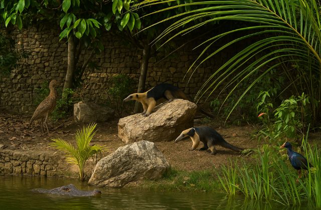 “A gente já viu até aves exóticas aqui”, conta Ailton, que, com olhar atento e disposição de verdadeiro guardião, registra as visitas inesperadas. A secretária de Administração, Sonia Pereira, relata o flagrante de um tamanduá-mirim passeando pelo local. Cotias, pássaros de várias espécies e peixes — muitos deles colocados pelos próprios cuidadores — completam o quadro de biodiversidade. Infelizmente, nem todos têm a mesma sensibilidade: predadores humanos já retiraram animais do lago, como o desaparecimento de um pequeno jacaré que se tornou conhecido entre frequentadores.
