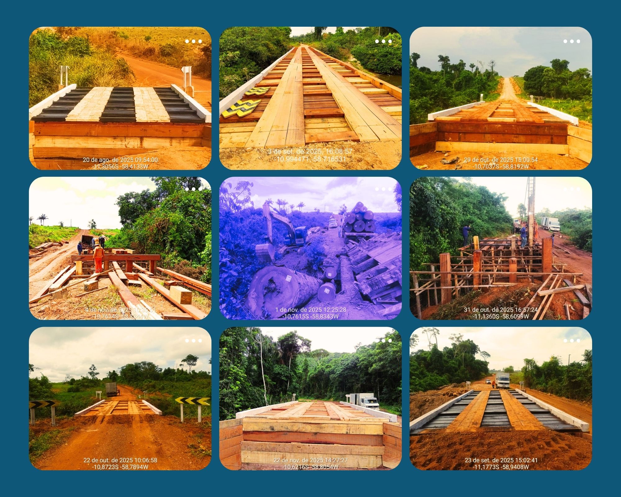 A imagem central desta matéria, entre tantas outras registradas ao longo dos anos, carrega um simbolismo contundente: ela retrata um dos inúmeros acidentes provocados pelas antigas pontes de madeira que ainda resistiam no município de Castanheira, especialmente na Linha Vale Ouro, ao longo da MT-420. Essa cena, antes comum, hoje representa uma realidade em transformação. As estruturas precárias estão sendo substituídas de maneira contínua e planejada, dentro de um dos maiores ciclos de renovação de infraestrutura rural da história local.